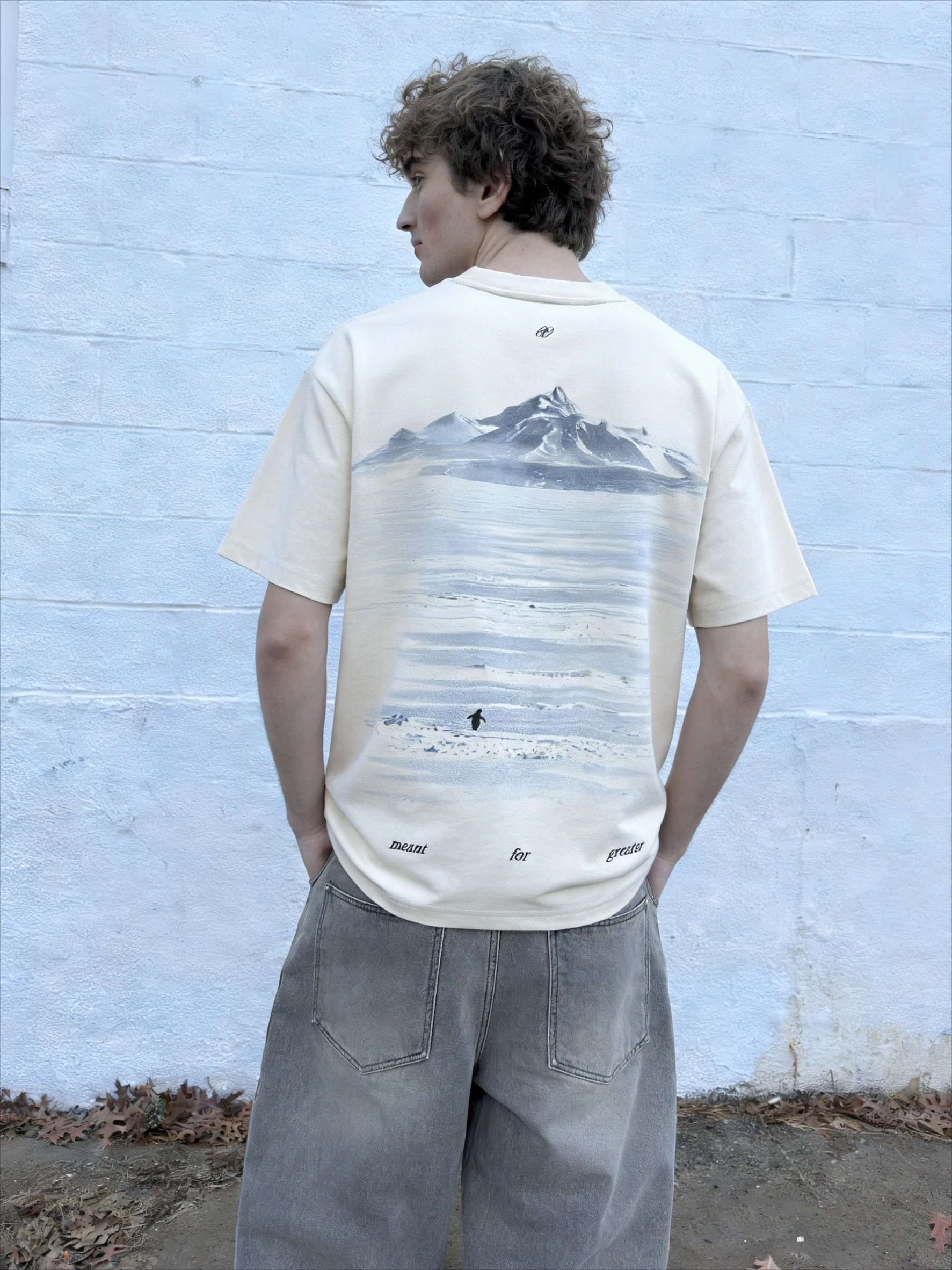 Y2K men's T-shirt fashion broketale snow mountain penguin print graphic round neck shirt oversized unisex casual men's clothing