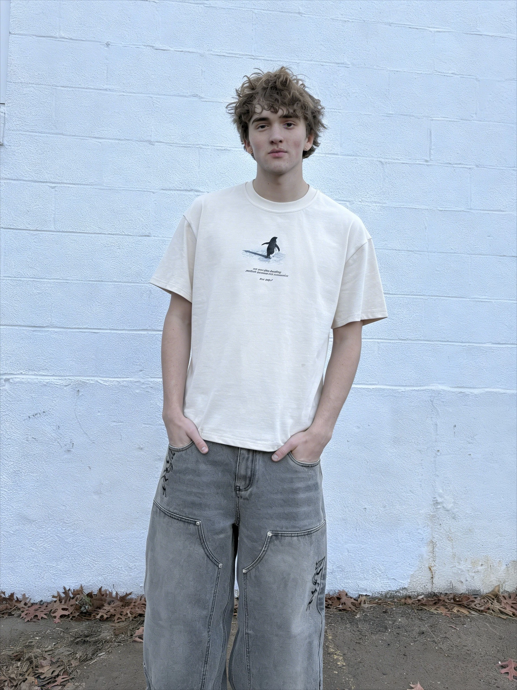 Y2K men's T-shirt fashion broketale snow mountain penguin print graphic round neck shirt oversized unisex casual men's clothing